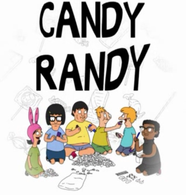 End Credits Sequence[]![]() The kids including Darryl plus Andy and Ollie are sat eating the candy they stole from Millie. Andy and Ollie feed each other. Darryl sorts and counts his candy. Gene scarfs his candy down. Louise trades Tina a single big candy bar for Tina's whole pile of candy. A song about Darryl's favorite blog Candy Randy plays, with the lyrics appearing on screen. |