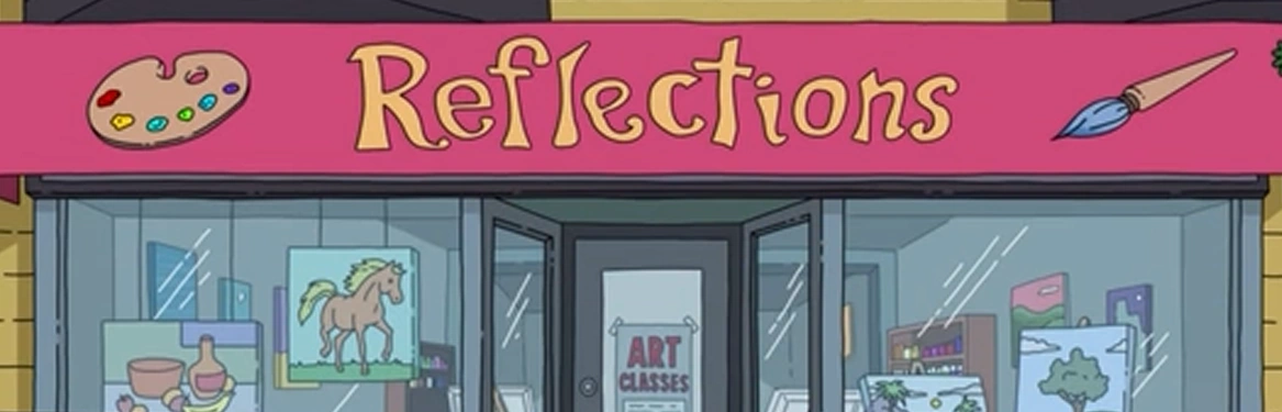 Reflections is an arts and crafts store that is located on Ocean Avenue four doors down from Jimmy Pesto's Pizzeria that is across the road from Bob's Burgers. It is co-owned by married couple, Harold and Edith Cranwinkle who often bully Bob Belcher.